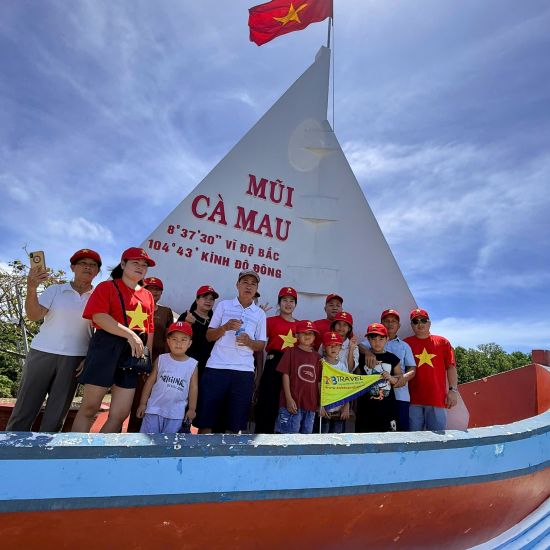 Qúy khách di chuyển đến Pano Hình Con Tàu Hướng Ra Biển Đông. Trên cánh buồm có ghi tọa độ của Mũi Cà Mau, điểm chụp hình được du khách đặc biệt yêu thích khi đến đây. Tại đây, Quý khách tự do tham quan, chụp hình check in khoảng 15 – 20 phút.